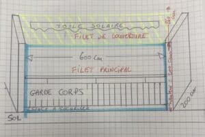 - les éléments sur lesquels nous pouvons fixer le filet: murs, sol, plafond, garde-corps et les matériaux en présence. exemple: mur en brique, garde-corps en acier...