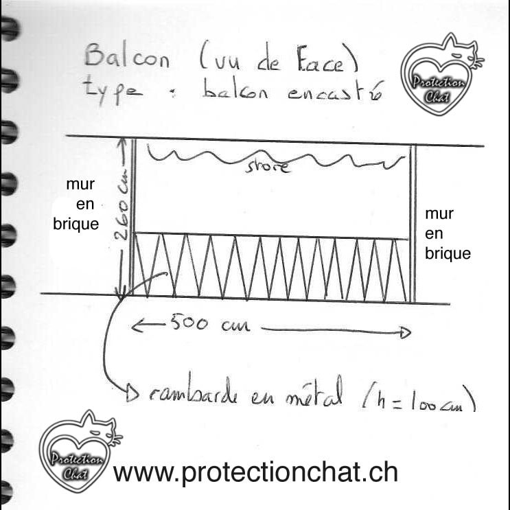 - les éléments sur lesquels nous pouvons fixer le filet: murs, sol, plafond, garde-corps et les matériaux en présence. exemple: mur en brique, garde-corps en acier...