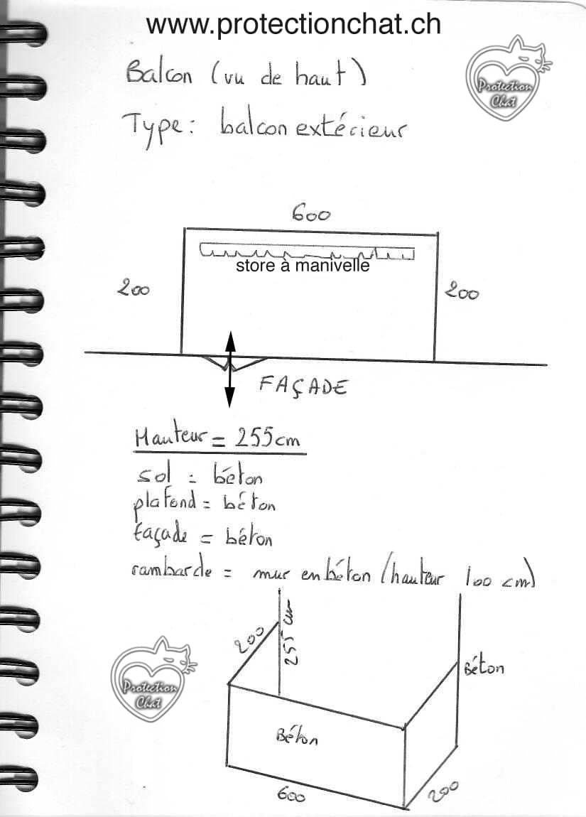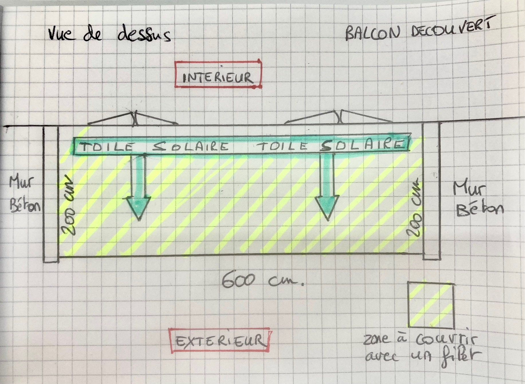 - la présence d'un store et le volume qu'il occupe fermé/déployé; dépasse t'il du périmètre du balcon ou de la terrasse ?