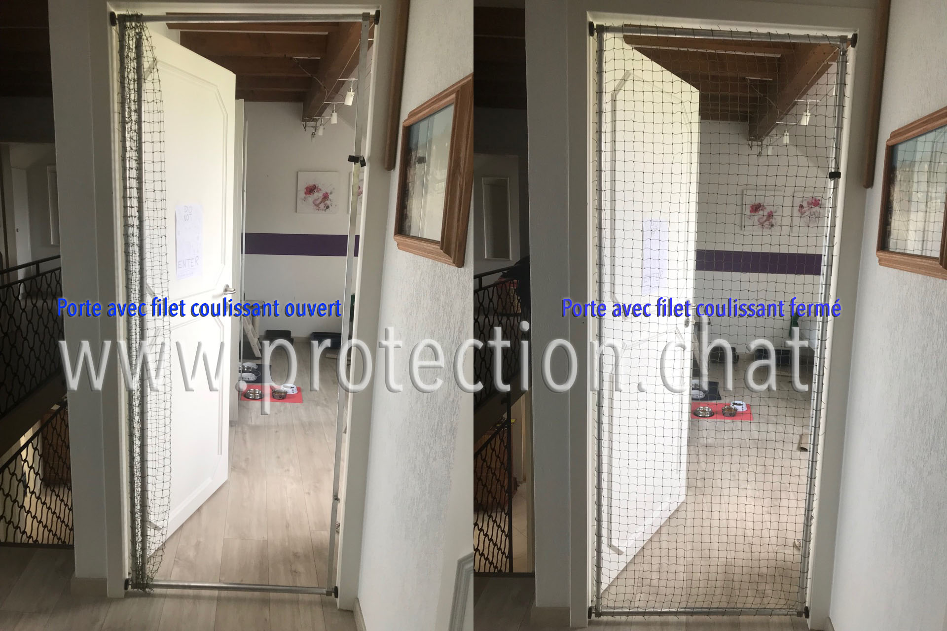 ProtectionChat produit et installe des cadres adaptables à la plupart des portes et porte-fenêtres.