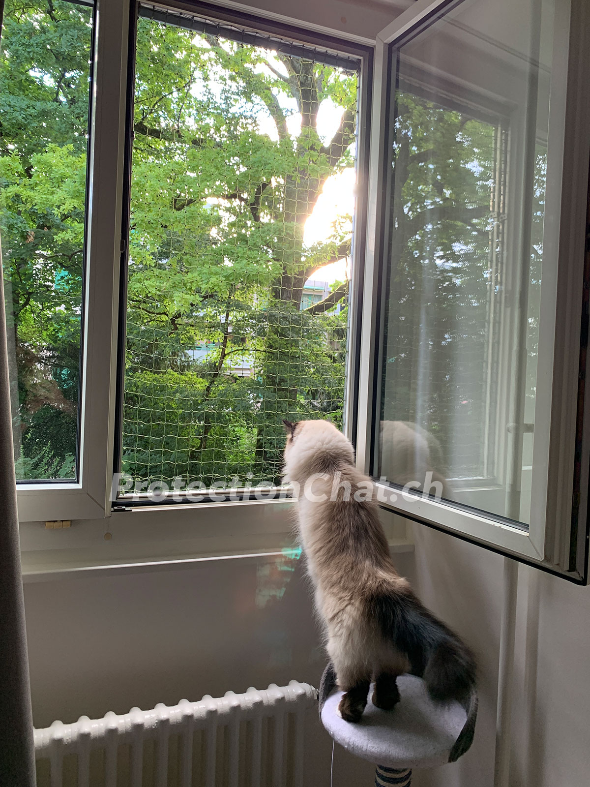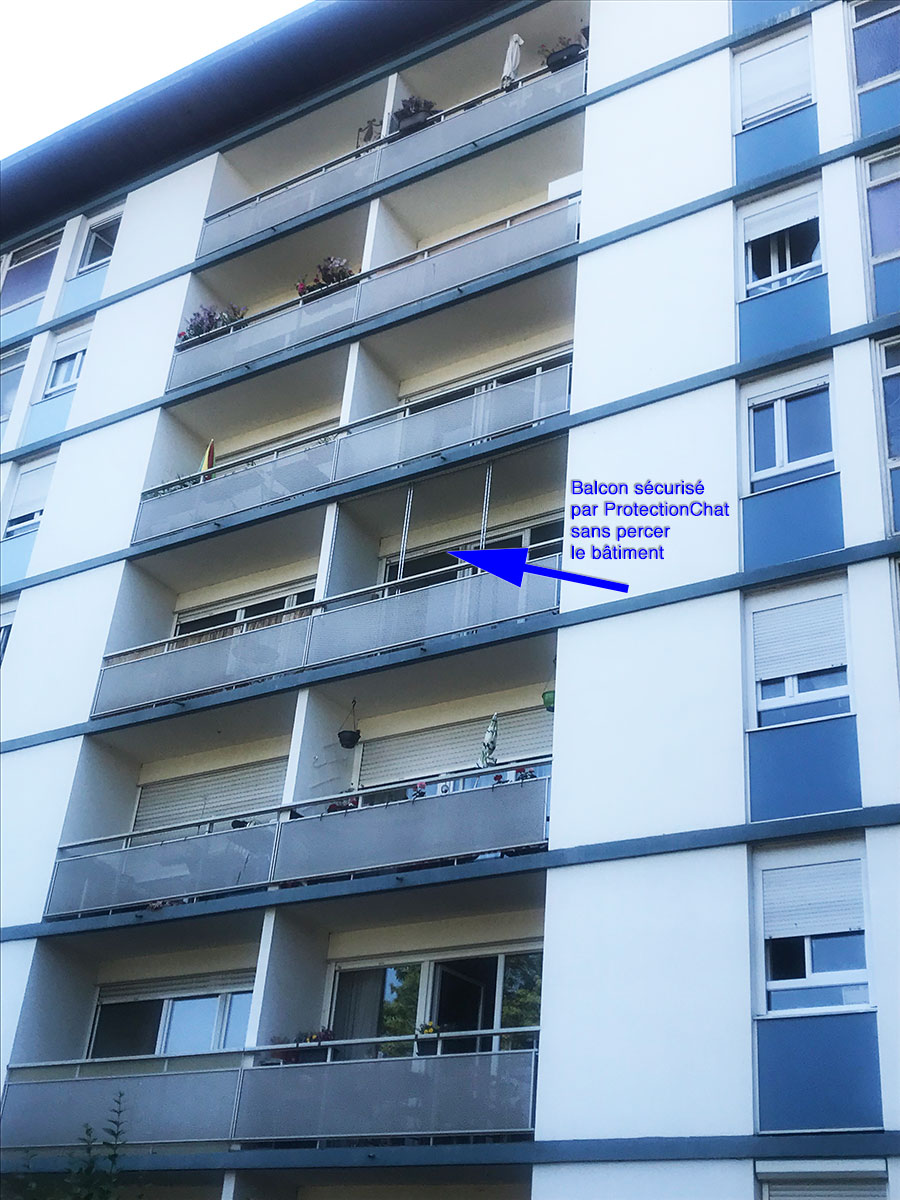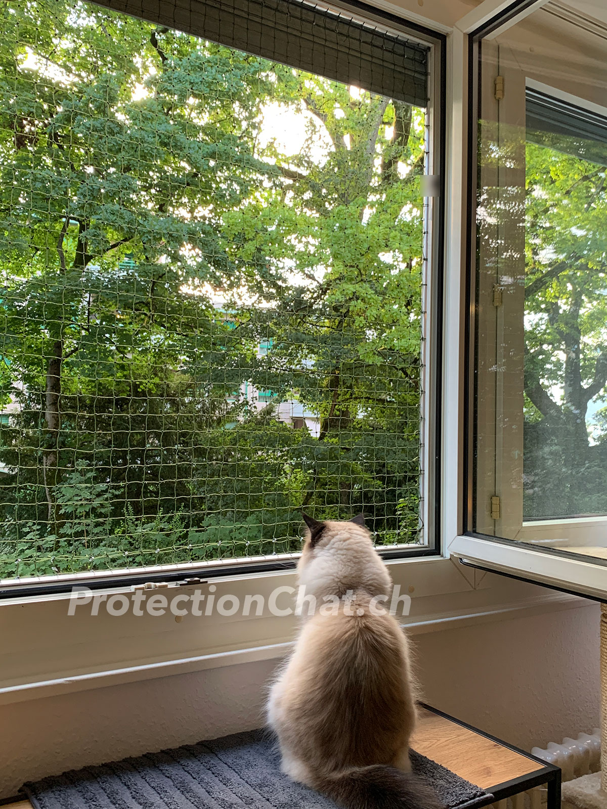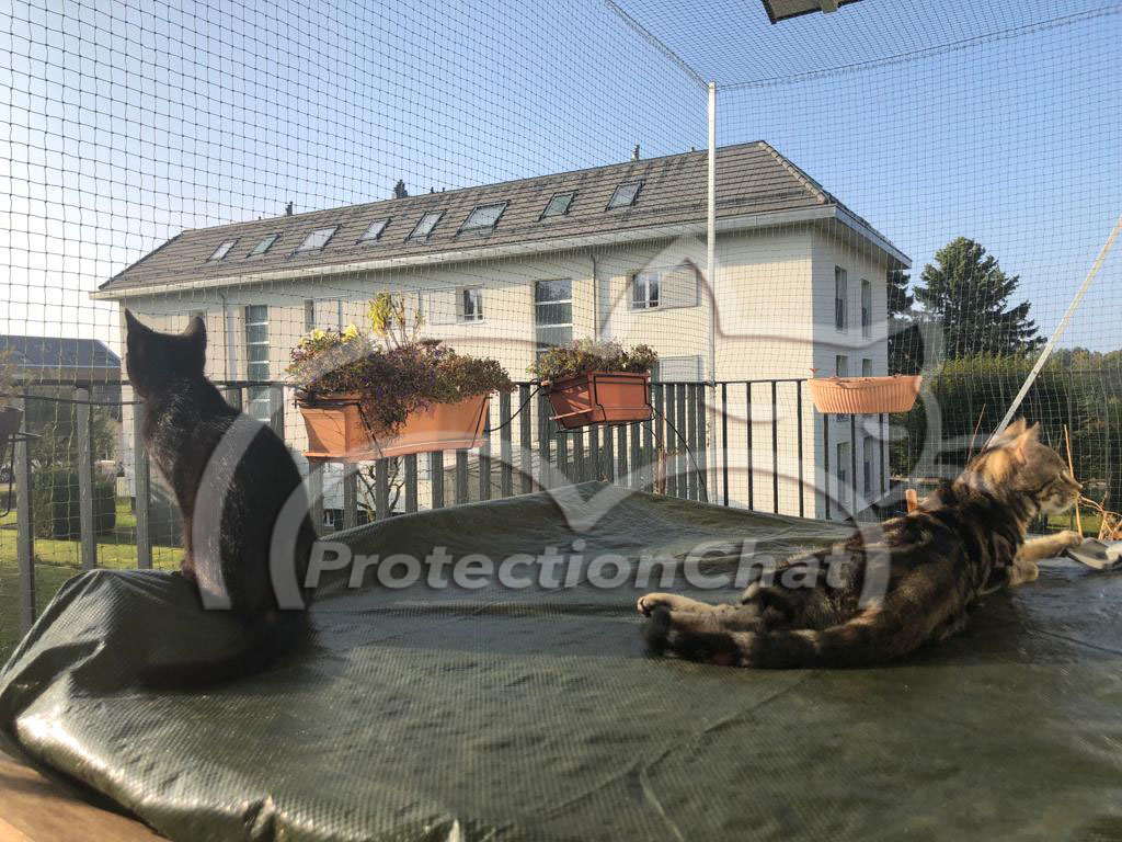 Voilà plus de 7 mois que ma petite Wictoria (Devon Rex) peut se promener en toute tranquilité sur le rebord de mon balcon. Elle a tout loisir de chasser du regard les oiseaux et petits insectes. J’ai choisi le filet transparant car je suis entourée de bâtiment et le filet ne se voit absolument pas à tel point que mes voisins d’en face venaient m’aviser qu’ils craignaient que ma petite tombe du balcon, surpris de constater qu’un filet la protégeait.