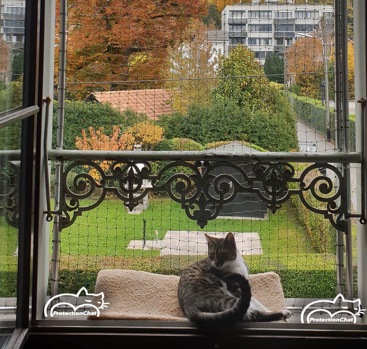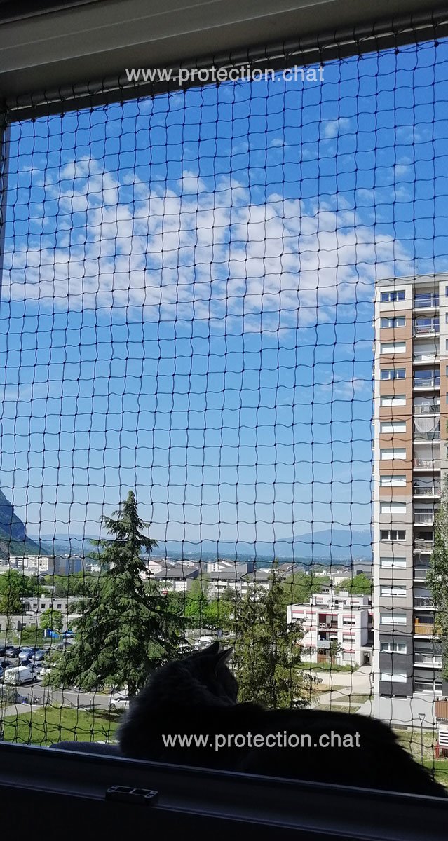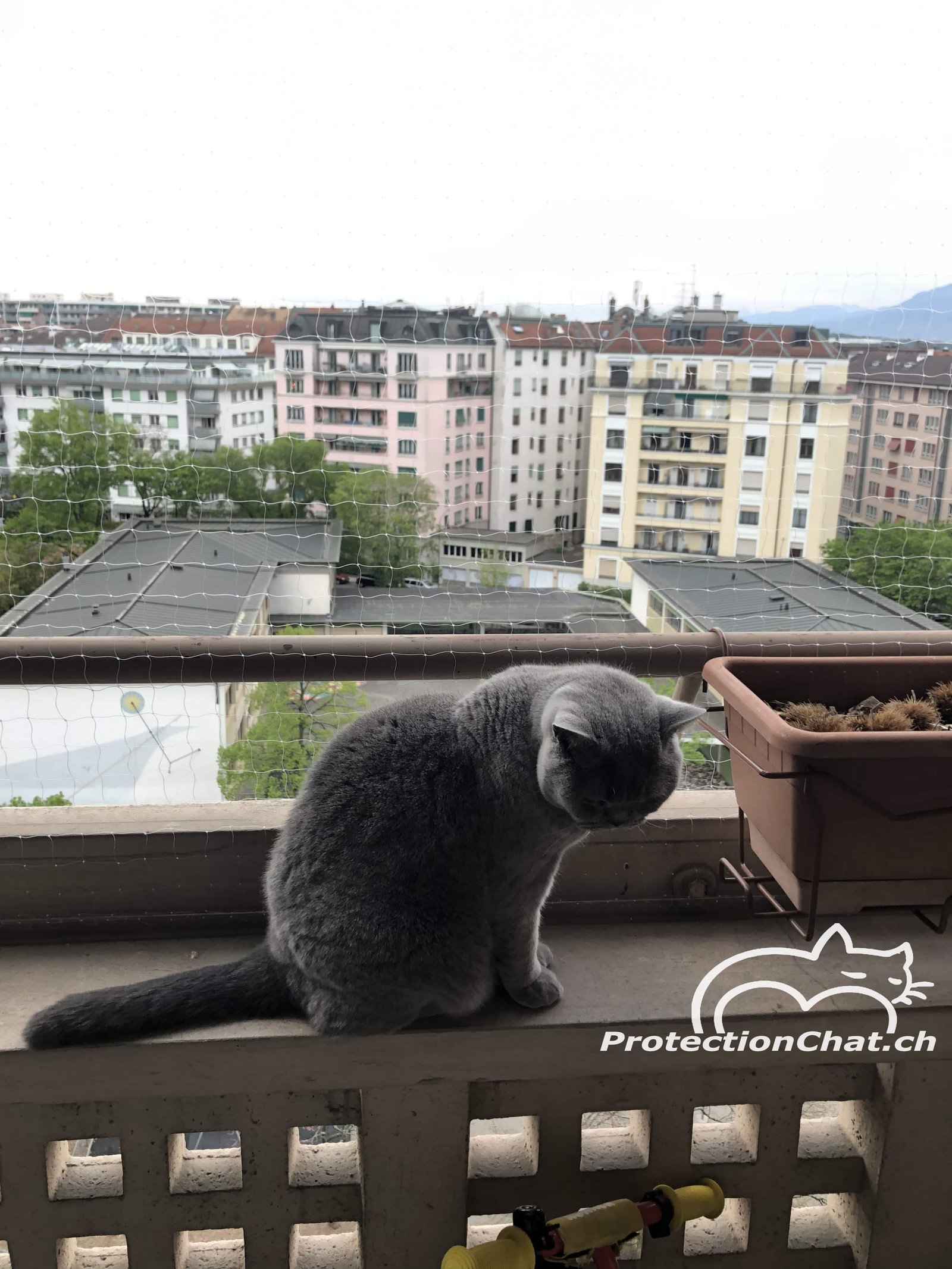 Voilà plus de 7 mois que ma petite Wictoria (Devon Rex) peut se promener en toute tranquilité sur le rebord de mon balcon. Elle a tout loisir de chasser du regard les oiseaux et petits insectes. J’ai choisi le filet transparant car je suis entourée de bâtiment et le filet ne se voit absolument pas à tel point que mes voisins d’en face venaient m’aviser qu’ils craignaient que ma petite tombe du balcon, surpris de constater qu’un filet la protégeait.